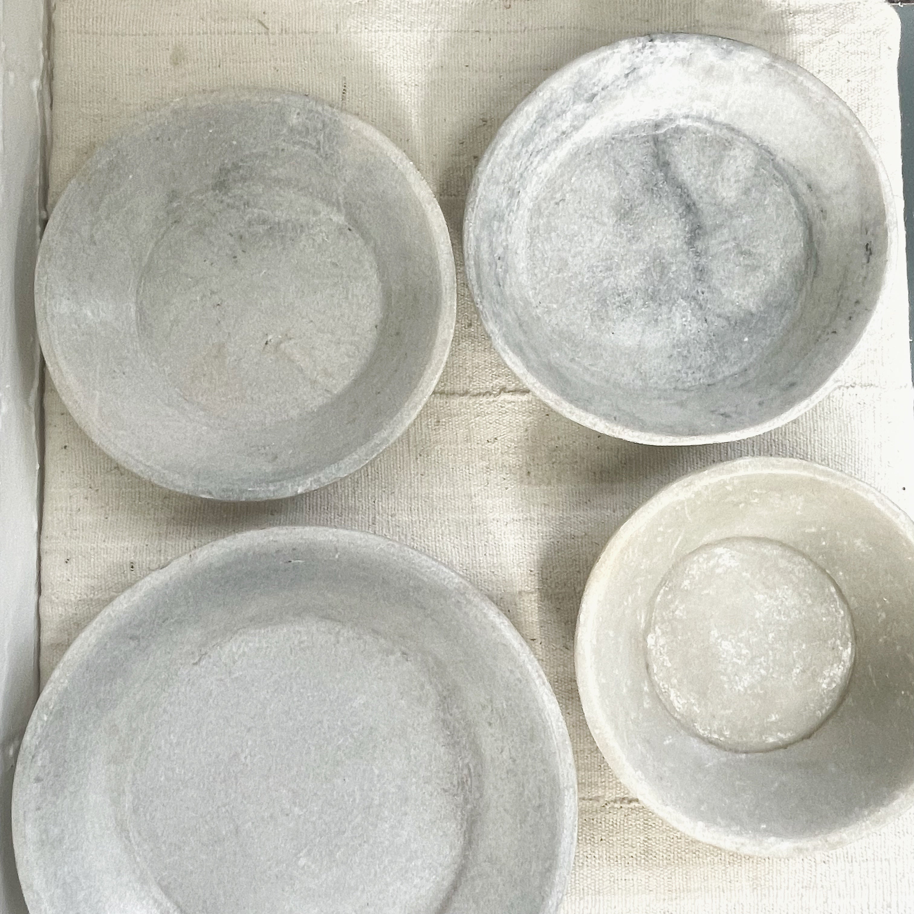 These carved marble bowls will add an elegant touch to any room. Whether used for displaying something or on their own, the craftsmanship will shine through. Available in 3 sizes, sold individually.