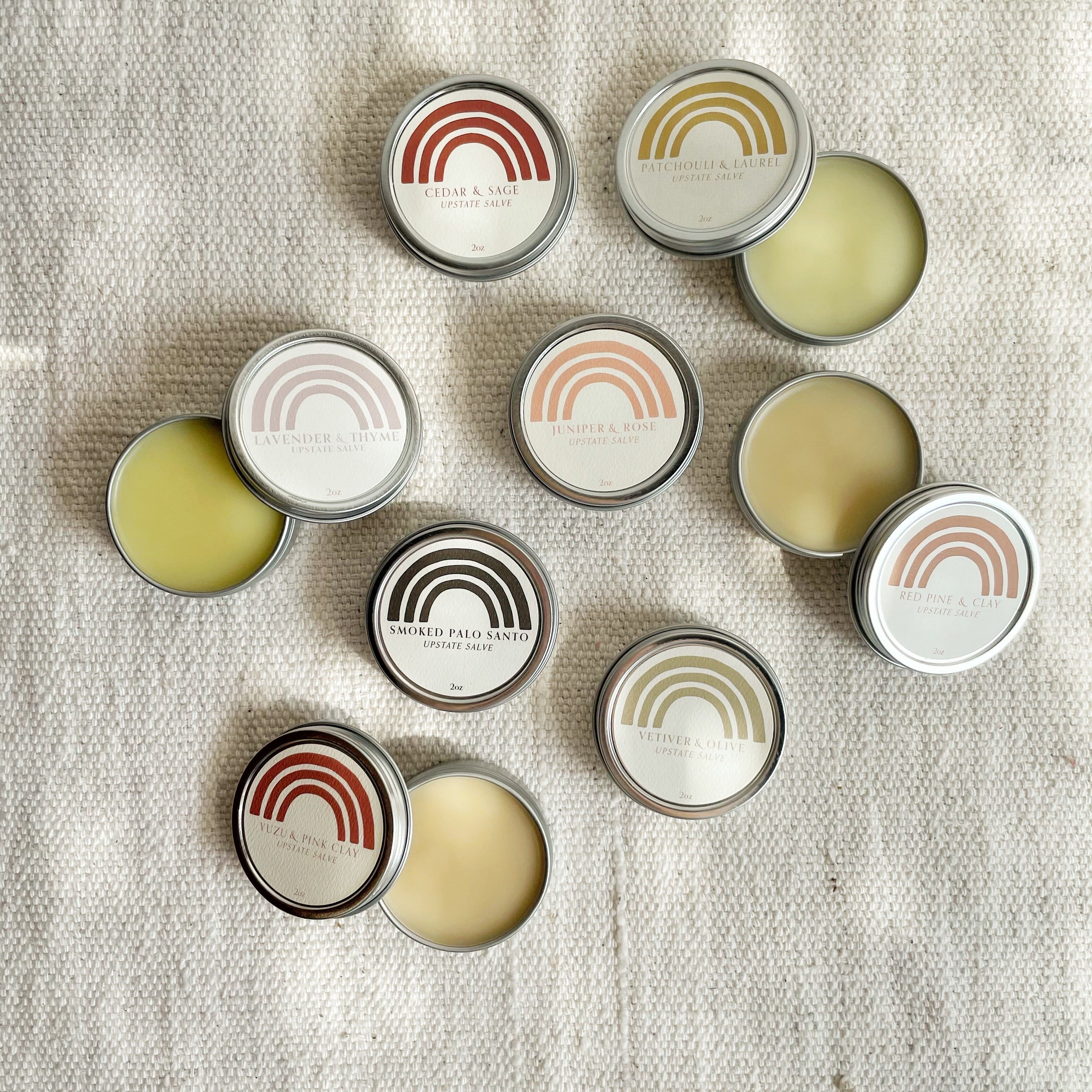 Our Upstate Salve is hand-blended, in our Rochester, NY studio. We use simple ingredients like coconut oil, olive oil, local beeswax, and essential oils. It is available in several fragrances from Lavender & Thyme to Yuzu & Pink Clay. These salves are packaged in two ounce tins, they are amazing for usage on the hands, face, body, and hair.